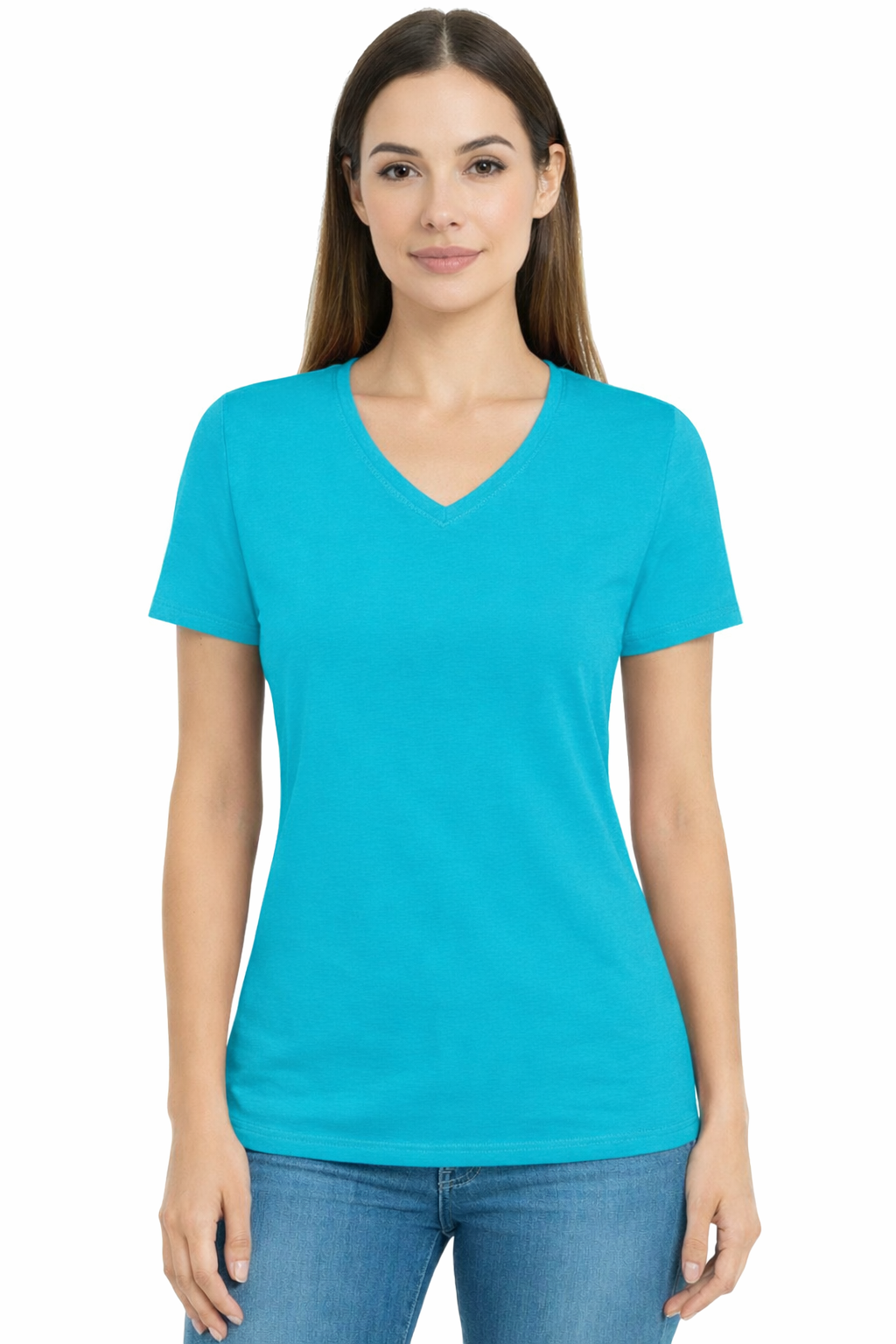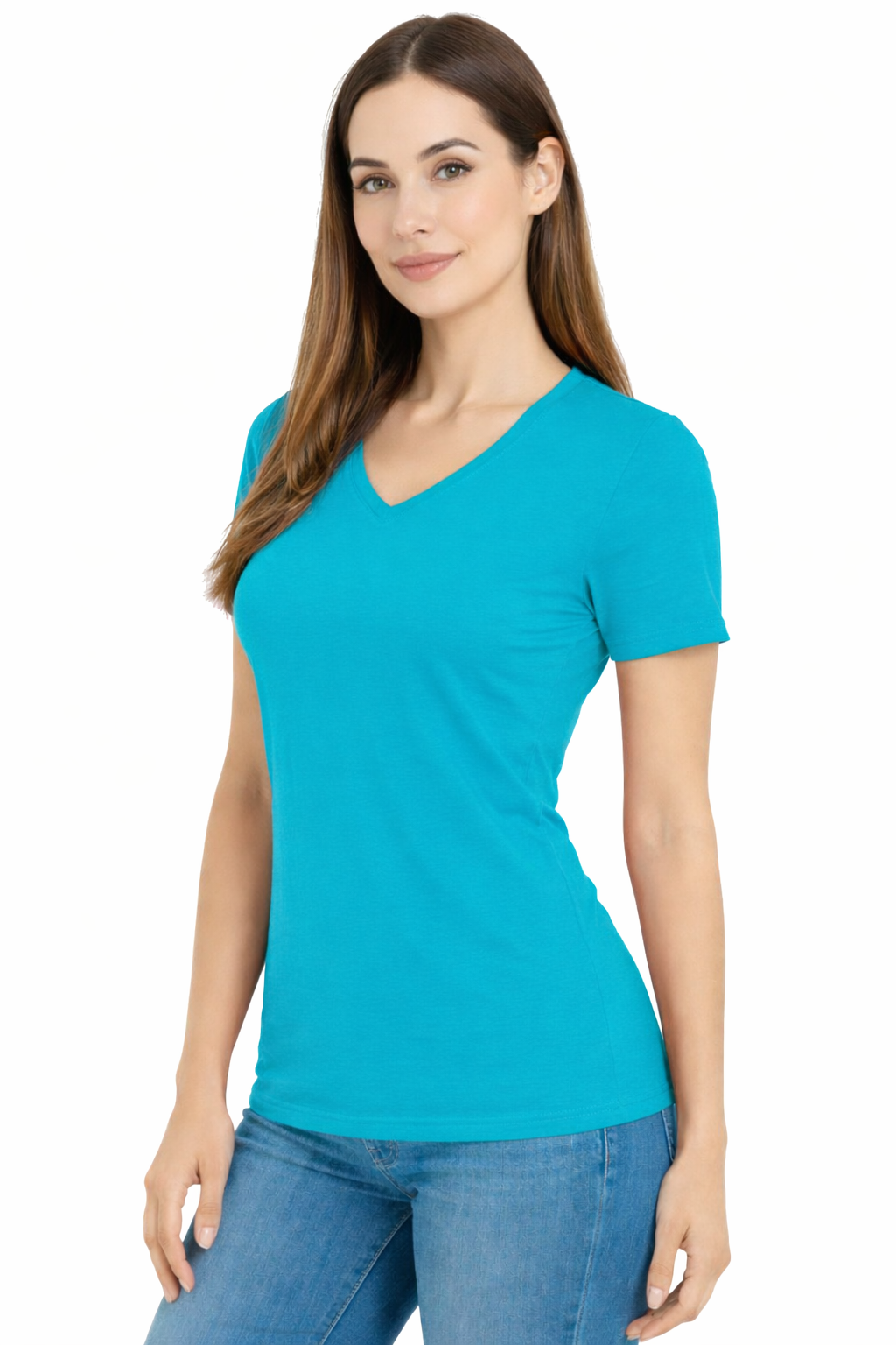 Tirkīza dāmu t-krekls ar īsu piedurkni un V-veida izgriezumu ir viegla, ērta ikdienas un darba iespēja. Izgatavots no Single Jersey auduma ar 100% kokvilnas saturu, nodrošina gaisa caurlaidību un ērtības nēsāšanās laikā. Pieguļošs piegriezums uzsver siluetu, bet 145 g smagums padara materiālu mīkstu un patīkamu pieskārienam. Modelis ir pieejams izmēros no S līdz XXL, tas arī lieliski piemērosies kā pamats apdrukai vai korporatīvai apģērbam.