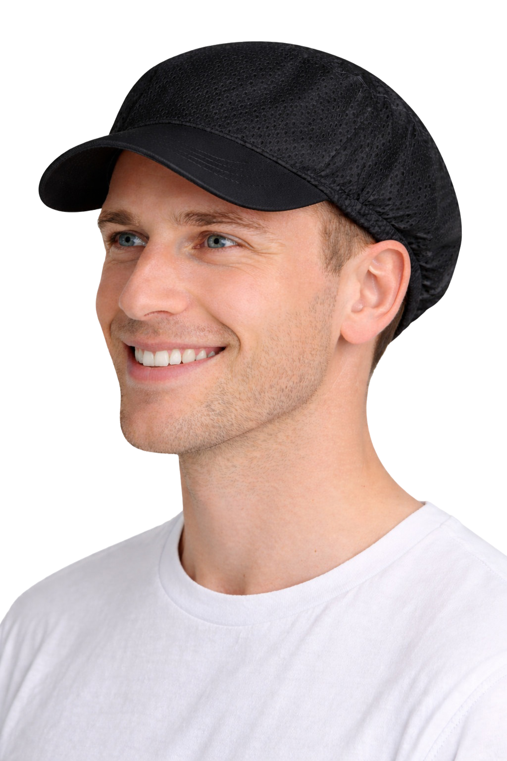 Elpojoša melna pavārmāte Gatsby stilā apvieno eleganci ar funkcionālumu, nodrošinot darba komfortu pat augstās temperatūrās. Pateicoties tīkla izmantošanai, tā efektīvi ventilē galvu, un elastīga gumija nodrošina ideālu pielāgošanos un matu noturēšanu. Izgatavots no izturīga poliestera un kokvilnas maisījuma, ar pussietu brim, tas ir stilīgs un praktisks gastronomijas apģērba elements gan profesionāļiem, gan gatavošanas entuziastiem.