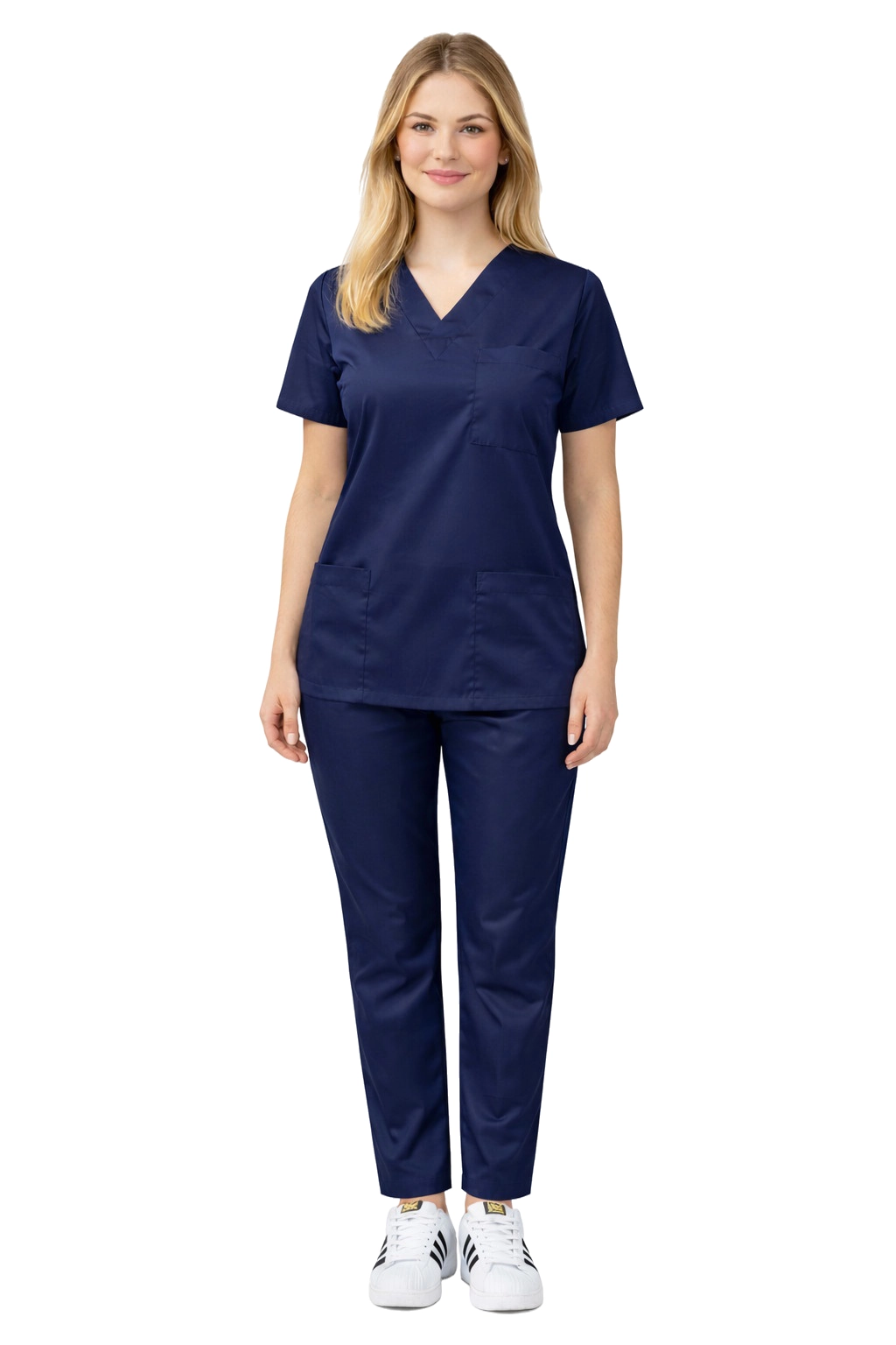 Tumši zilā krāsa dod uniformai profesionālu izskatu un padara komplektu ideāli piemērotu lietošanai slimnīcās, klīnikās, ārstu kabinetos, zobārstniecības un veterinārajās kabinetos.