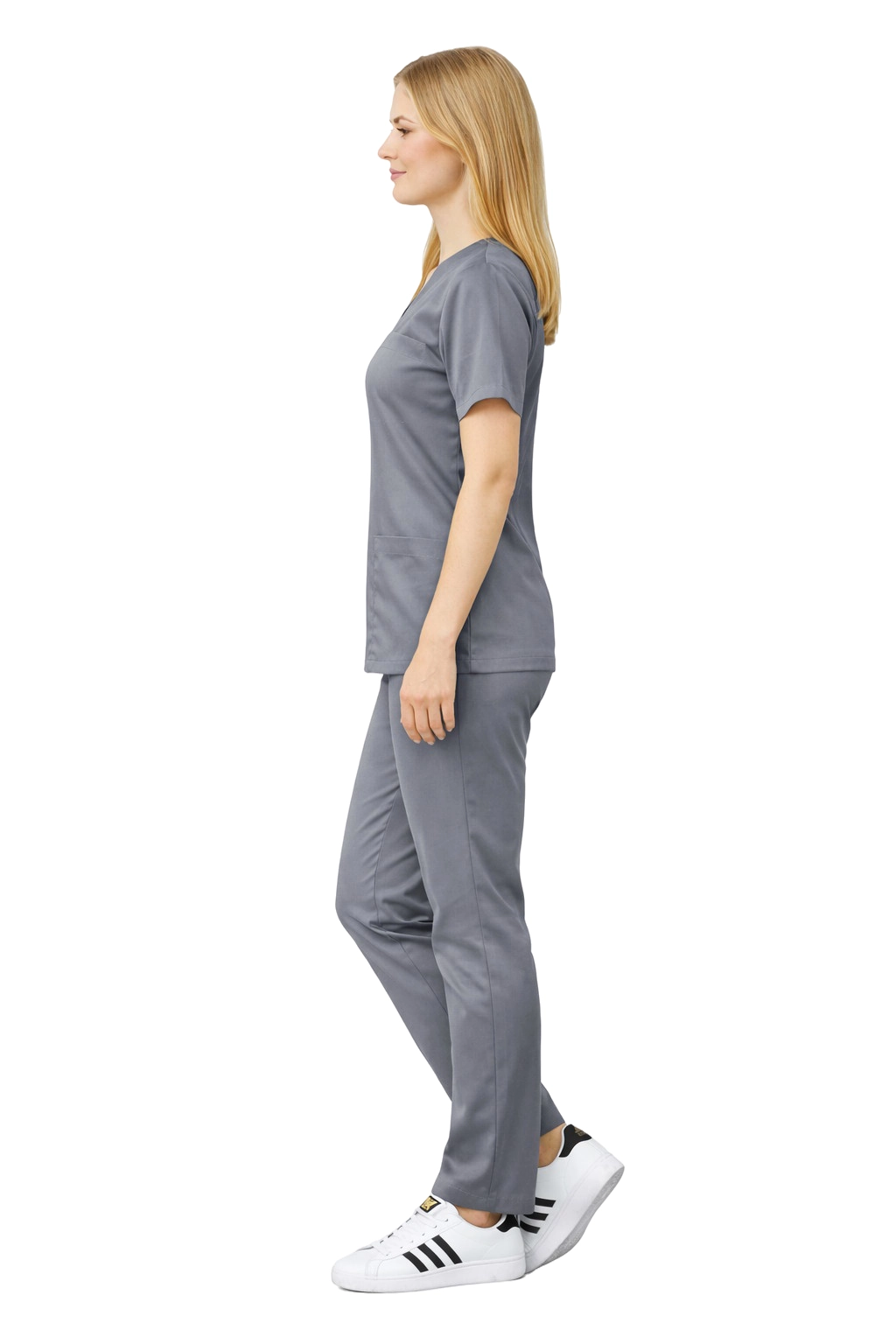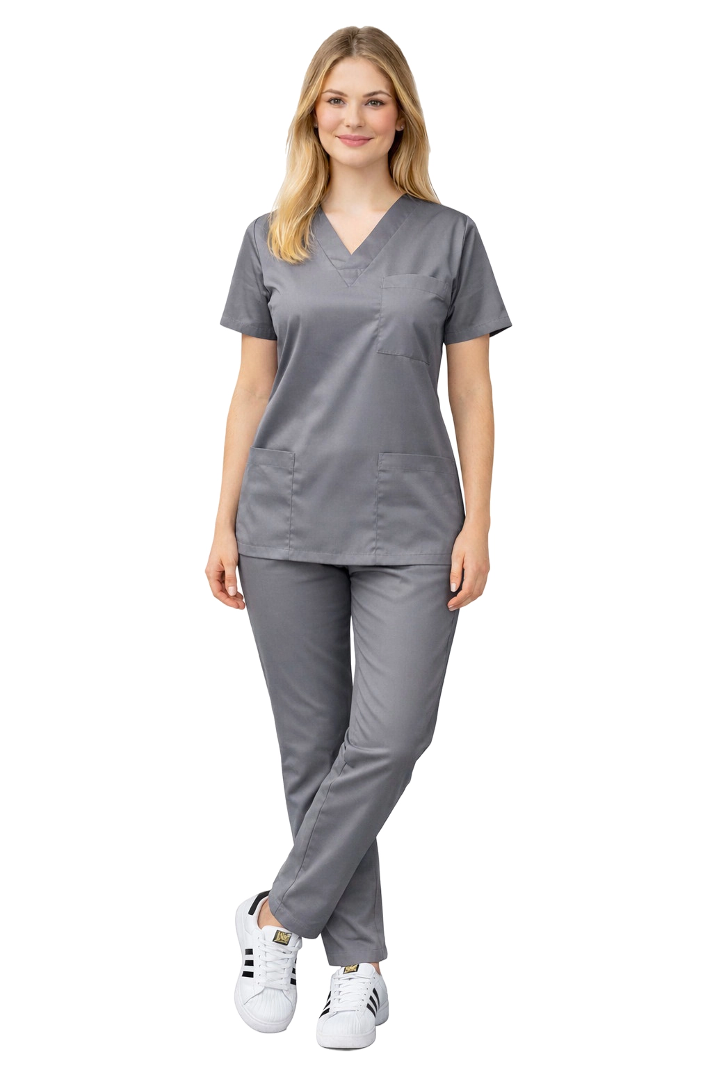 Medicīnas komplekts elastīgs COMFORT FLEX pelēkā krāsā ir mūsdienīgs medicīnas uniformas komplekts sievietēm, kuras novērtē ērtumu, eleganci un brīvību kustībās ilga darba dienas laikā ar pacientiem. Komplekts ir izgatavots no augstas kvalitātes elastīga auduma, kas nodrošina valkāšanas komfortu un izturību pat intensīvi lietojot.