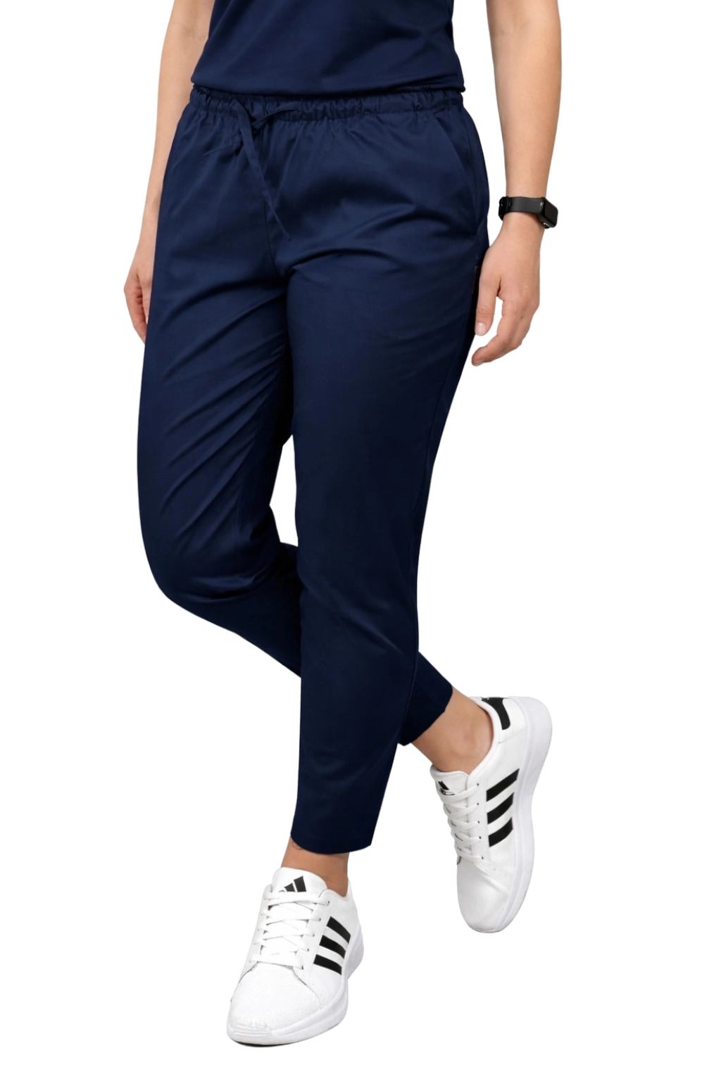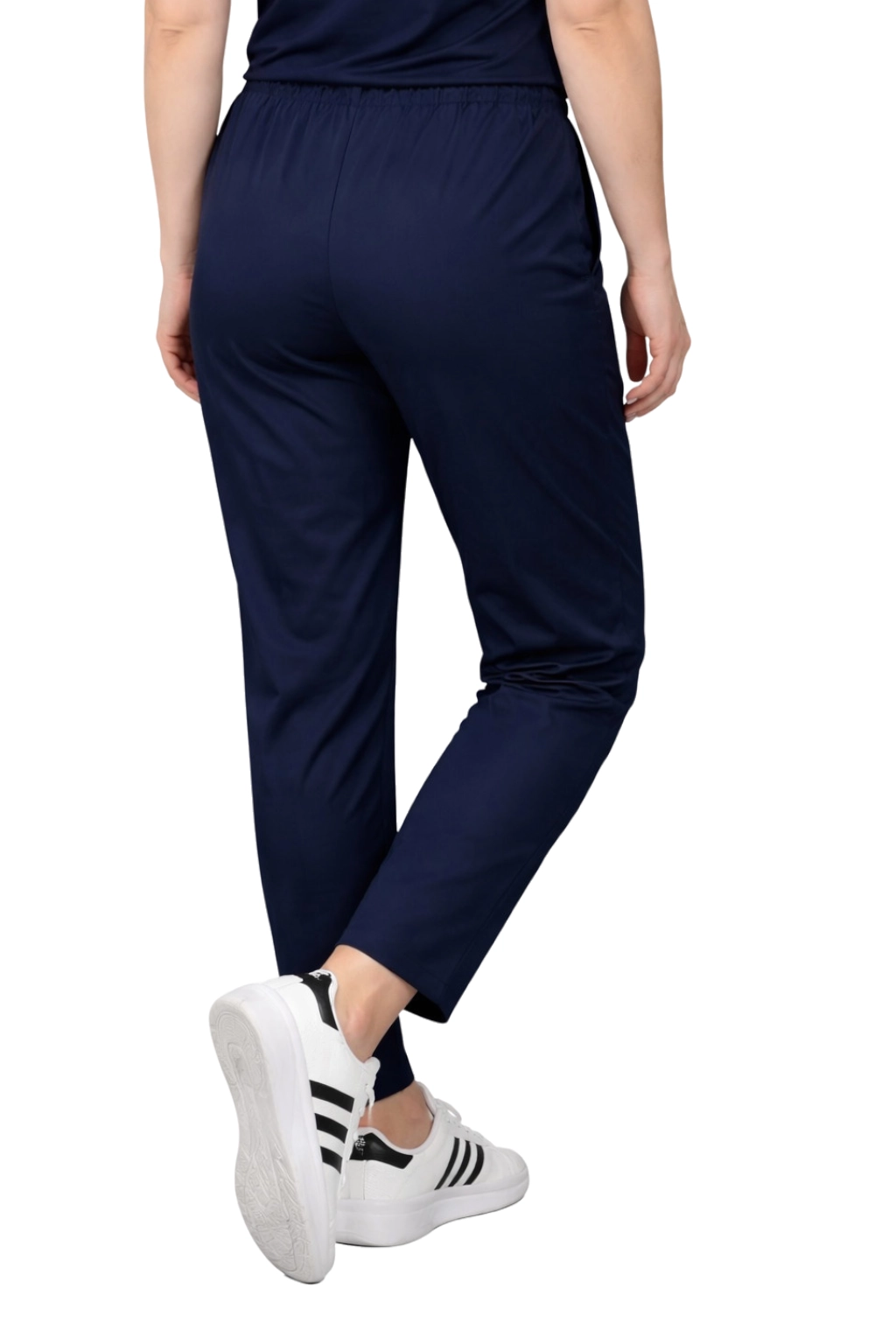 Modeli raksturo vieglas, nedaudz noapaļotas bikses un josta ar gumiju un striķi, kas nodrošina ideālu pieskaņošanu un kustību brīvību. Divas praktiskas sānu kabatas ļauj glabāt visvairāk nepieciešamos aksesuārus – no pildspalvām līdz medicīniskajam aprīkojumam. Universāla tumši zilā krāsa padara bikses lieliski saderīgas ar krāsainām medicīnas blūzēm, ļaujot veidot vienotas un modernas kombinācijas.