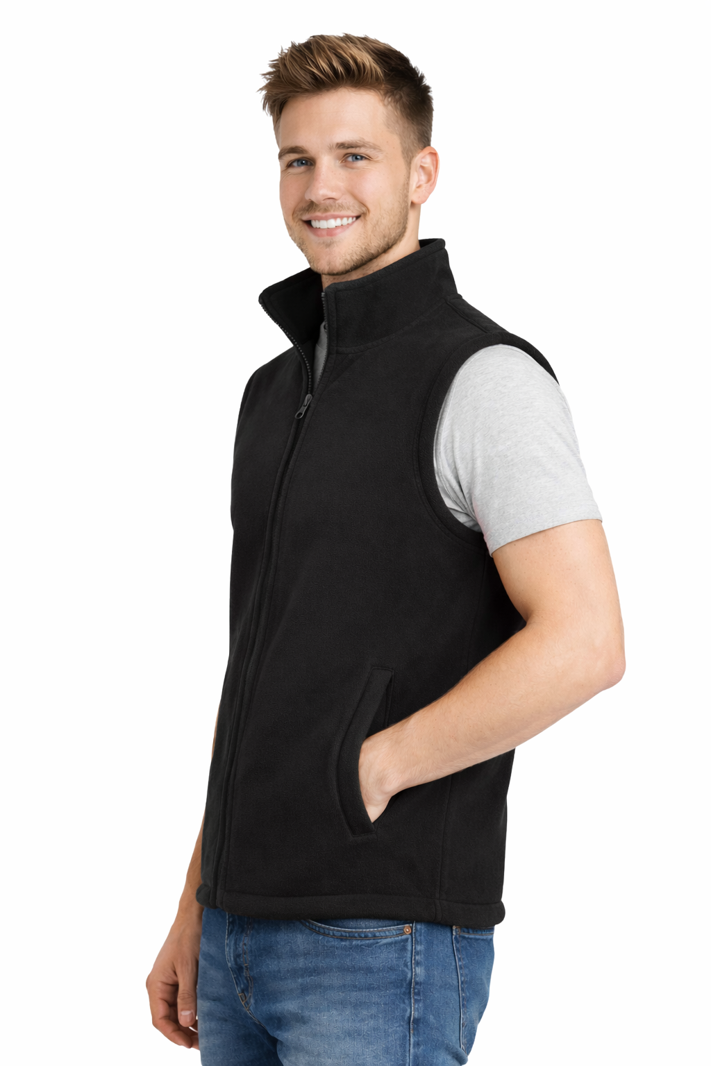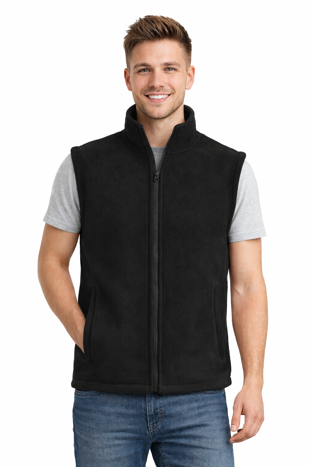 Melna polāra vesta, kas piestiprināma ar rāvējslēdzi, ir ērta un siltā apģērba slānis aukstākām dienām. Izgatavota no izturīga polāra ar augstu grammazhu, nodrošina labu siltuma izolāciju un ērtu nēsāšanu. Praktiskas kabatas ar rāvējslēdzēju, kā arī regulējams apakšējais daļa palielina funkcionalitāti, tādējādi vesta ir piemērota gan ikdienas lietošanai, gan darbam vai aktivitātēm svaigā gaisā.