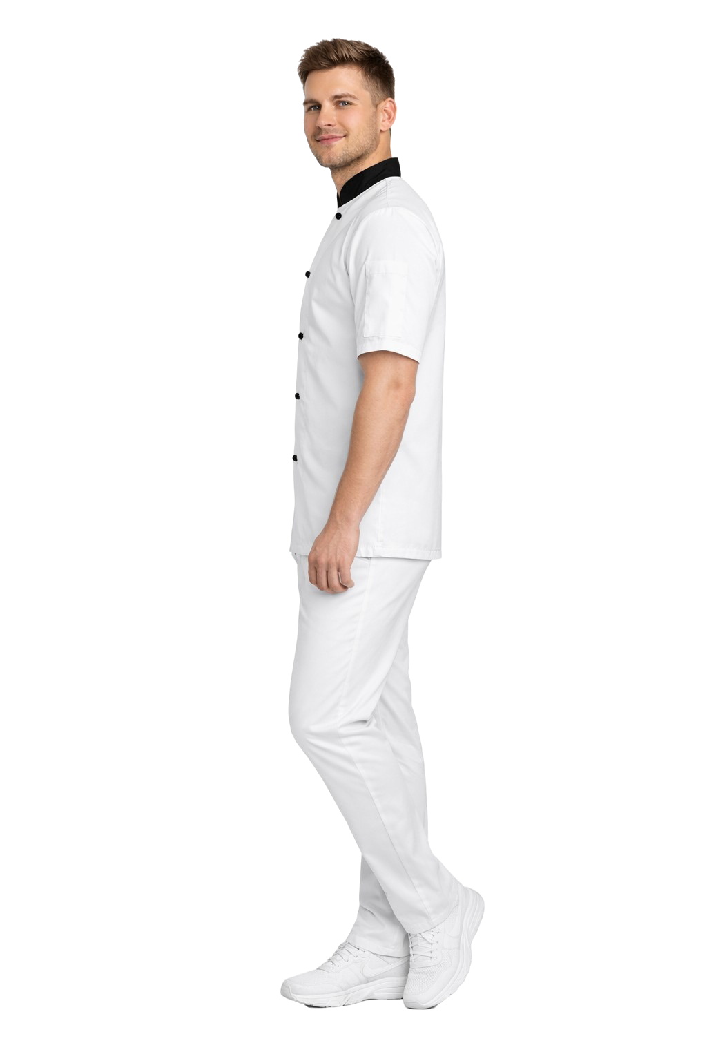 Virsnieka virtuves komplekts ir projekts, kas nodrošina komfortu, strādājot virtuvē daudzas stundas, un vienlaikus izskatās elegants un profesionāli. Atbilstoša krojuma un ilgmūžīgi audumi nodrošina, ka uniforma ir piemērota ikdienas lietošanai.