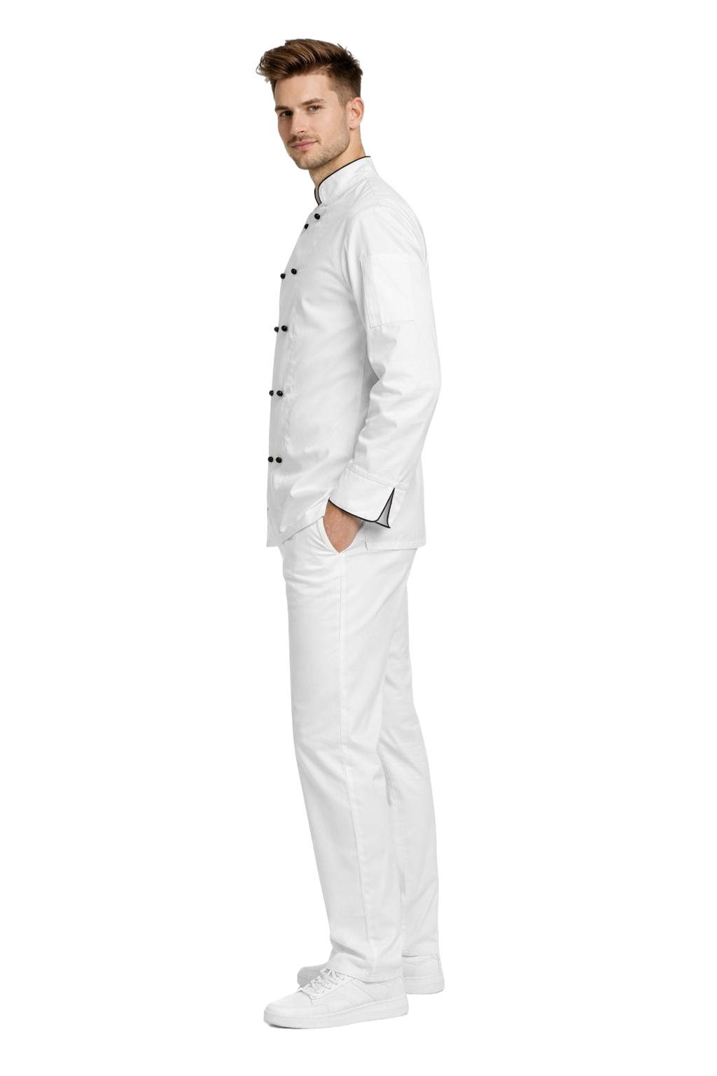 Galvenā pavāra komplekts ir izstrādāts tā, lai nodrošinātu komfortu ilgstošas darba stundas virtuvē, vienlaikus izskatītos eleganti un profesionāli. Piemērota griezuma un izturīgu audumu kompānija nodrošina, ka tērps ir piemērots ikdienas lietošanai.