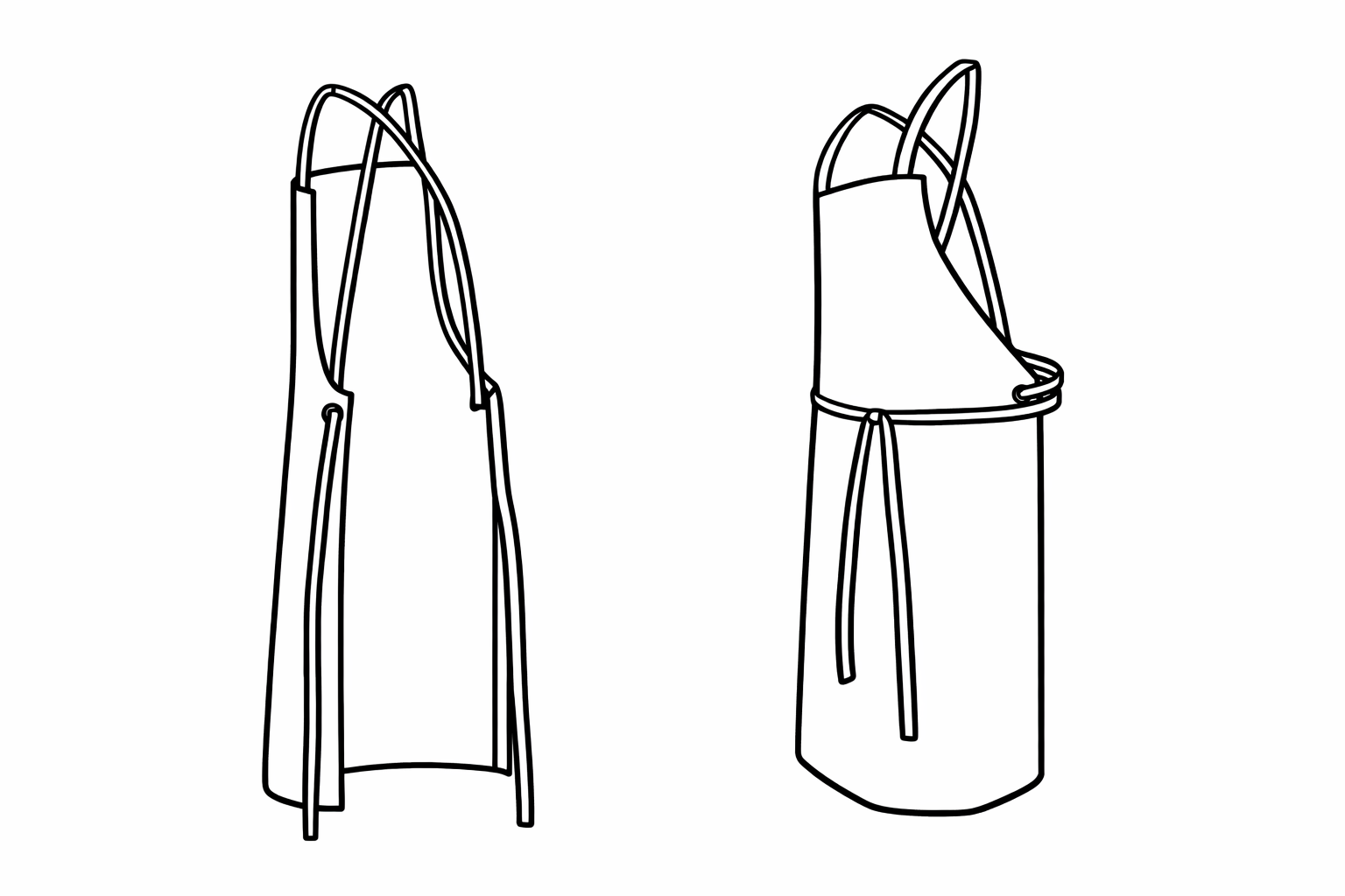 Priekšautā ir krustveida lentes aiz muguras, kas iet caur sānu acīm un tiek sasietas pie vidukļa. Tas ļauj viegli pielāgot garumu un stabilāk uzturēt priekšautu uz figūras darba laikā.