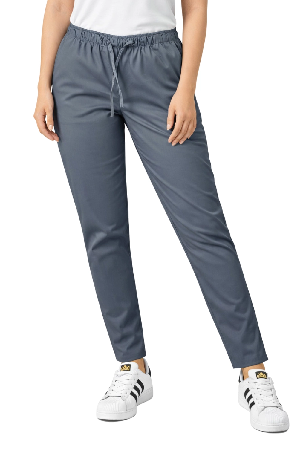 Modeli raksturo nedaudz iesaurinātas biksju kājas un jostasvītne ar virvīti, kas nodrošina perfektu piesaisti un pārvietošanās brīvību. Divas praktiskas sānu kabatas ļauj uzglabāt visnepieciešamākās lietas - no pildspalvām līdz nelielai medicīniskai iekārtai. Universāla pelēka krāsa padara bikses lieliski saderīgas ar krāsainām medicīnas blūzēm, ļaujot radīt vienotus un mūsdienīgus komplektus.